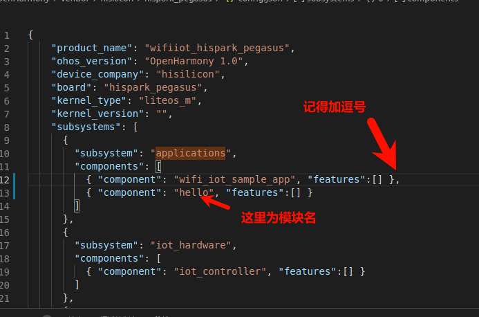 打开//鸿蒙根目录/vendor/hisilicon/hispark_pegasus/config.json