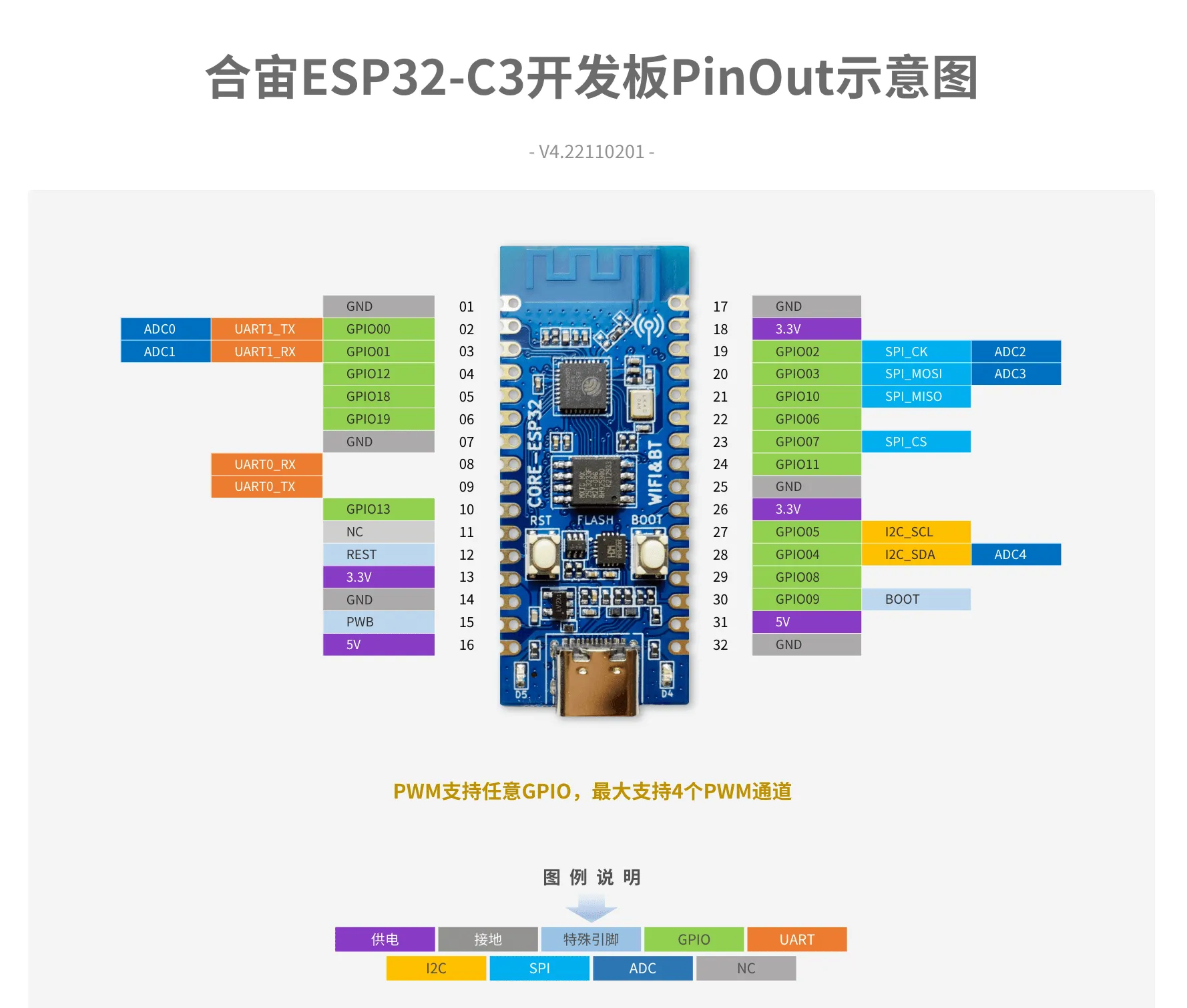 2024-11-01 2026-04-09 arduino基于ESP32基本信息ESP32 c6 IO图 ESP32 wroom 32e IO图 ESP32 c3 IO图 合宙ESP32C3-CORE开发板 ESP32C6 测试代码测试代码 1234567891011121314151617181920212223242526#include <Adafruit_NeoPixel.h>constexpr uint8_t LED_PIN = 8;constexpr uint8_t NUM_LEDS = 1;Adafruit_NeoPixel rgbLed(NUM_LEDS, LED_PIN, NEO_GRB + NEO_KHZ800);struct RGB { uint8_t r, g, b;};constexpr RGB COLOR_OFF = {0, 0, 0};// ...Feel free to add more colors here...constexpr RGB CUSTOM_COLOR = {255, 0, 255}; void setup() { rgbLed.begin(); rgbLed.show(); }void setColor(const RGB& color) { rgbLed.setPixelColor(0, rgbLed.Color(color.r, color.g, color.b)); rgbLed.show();}void loop() { setColor(CUSTOM_COLOR); delay(500); setColor(COLOR_OFF); delay(500);} 效果 ESP32wroom 32e 测试代码 12345678910111213const int LEDA = 2;void setup() {pinMode(LEDA, OUTPUT);}void loop(){digitalWrite(LEDA, HIGH); // turn the LED on (HIGH is the voltage level)delay(500); //digitalWrite(LEDA, LOW); // turn the LED off by making the voltage LOWdelay(500); //} 效果 led闪烁 前一篇 arduino的ESP32的环境搭建 后一篇 openharmony用ubuntu编写线程