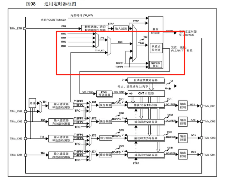 然后我们根据图片,刚刚好TI1FP1和TI2FP2可以到从模式控制器