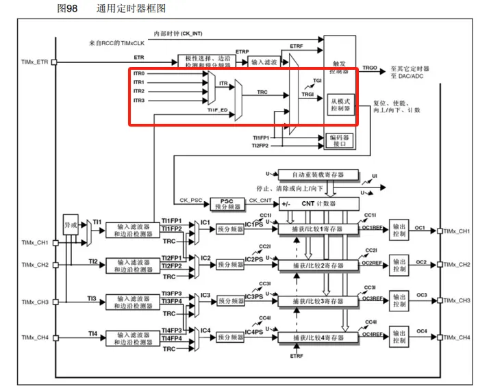 他是内部定时器CNT溢出复位后才会产生一次TRGO信号