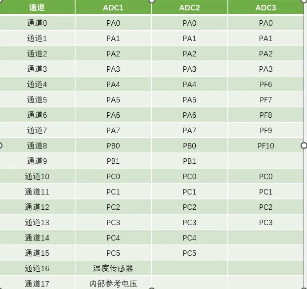 关于ADC通道和引脚关系