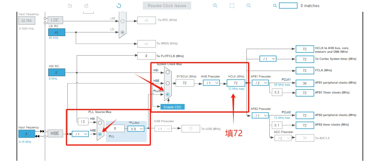 蓝色:代表着时钟不经过分频器和倍频系数直接作用
