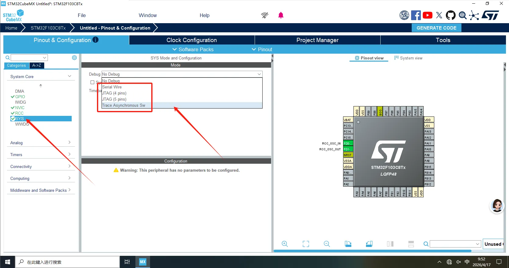 我们点Pinout & Configuration