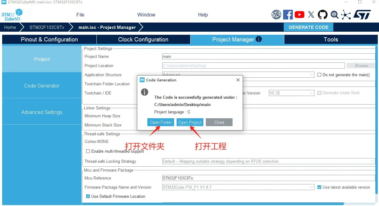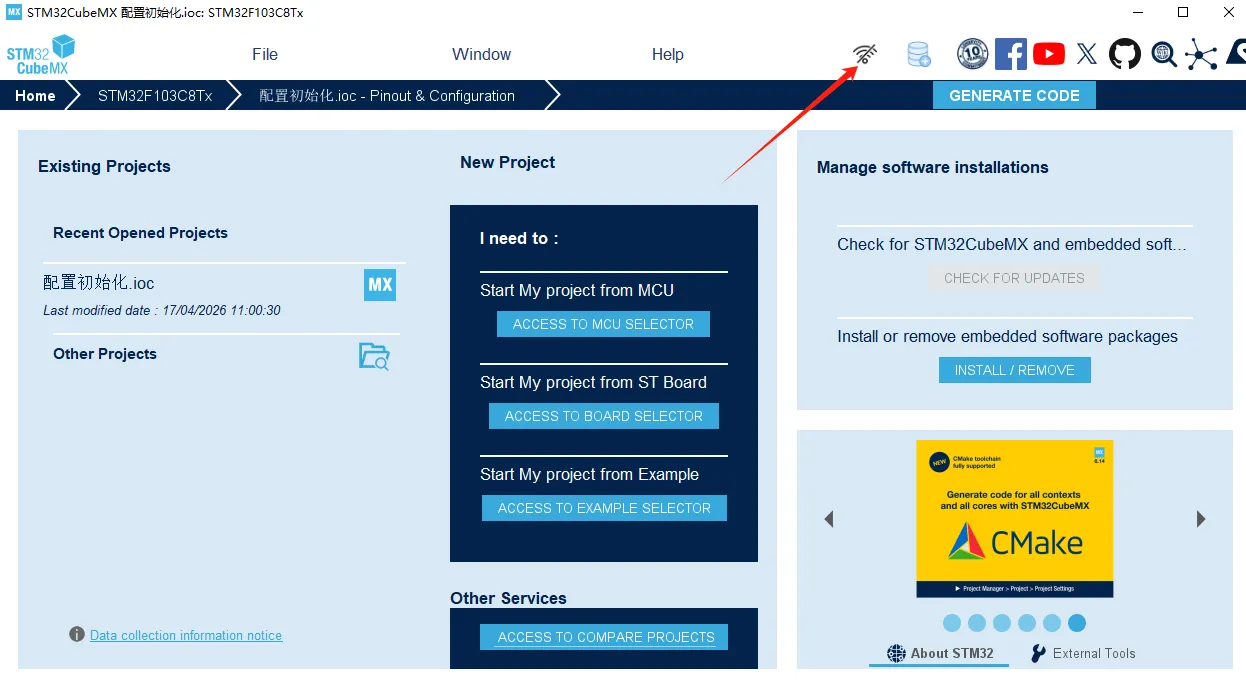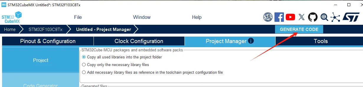 最后点击右上角GENERATE CODE就可以生成工程