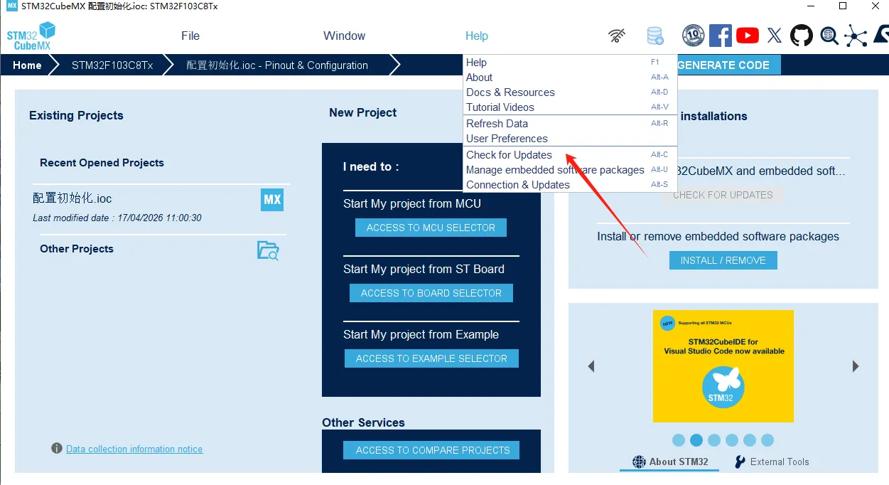 我们点击help然后选择 Manage embedded software packages